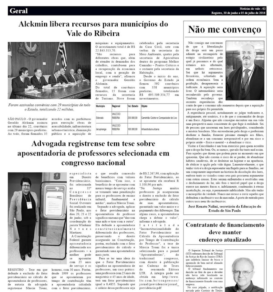 ButtonParticipação da Dra. Márcia Touni no 35º Congresso Brasileiro de Pevidência Social realizado em junho de 2016 na cidade de São Paulo.