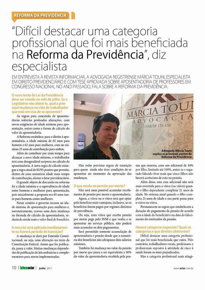 ButtonEntrevista da Dra. Márcia Touni na Revista da Associação Comercial e Industrial de Registro sobre Reforma da Previdência